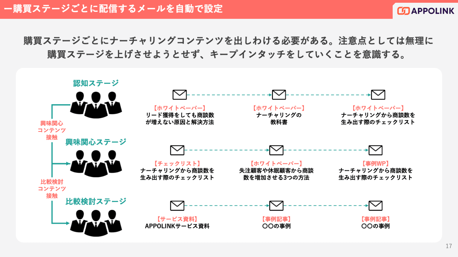 購買ステージに応じたコンテンツ設計と、商談に繋げるための活用ステップ